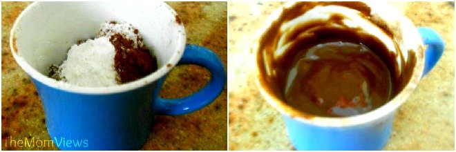 - Mix all the dry ingredients in the mug. Now add the cream and Milk to the Mug.