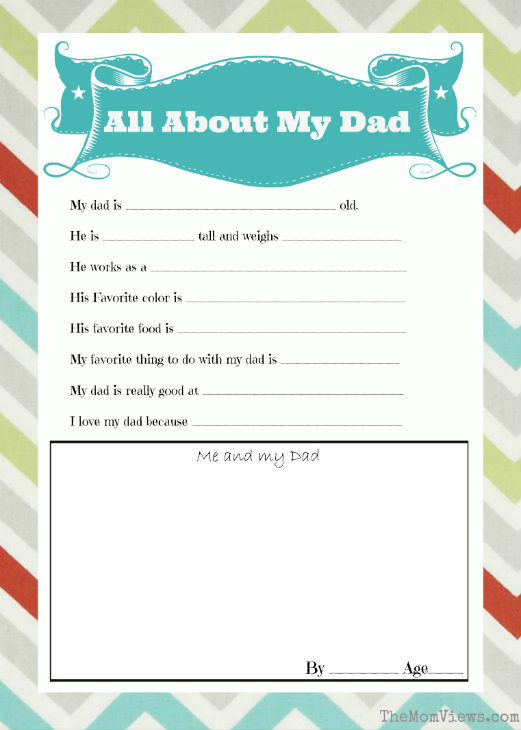 I saw a lot of printables on the internet for Father’s day but I saw some versions of “All about my dad” and really liked them so that is why I made my own.  It is a printable “All about my Dad” father’s day card and you can get your little one to fill it out and then frame it as a gift to your husband And of course for my lovely readers it is absolutely FREE to download.