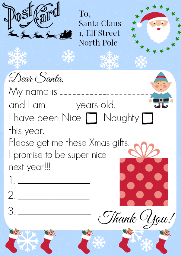 I have made it super simple to fill for preschoolers and even toddlers. Just help them write their name and age and tick in Nice or naughty checkboxes. They can also write three gifts they want and you can help them!