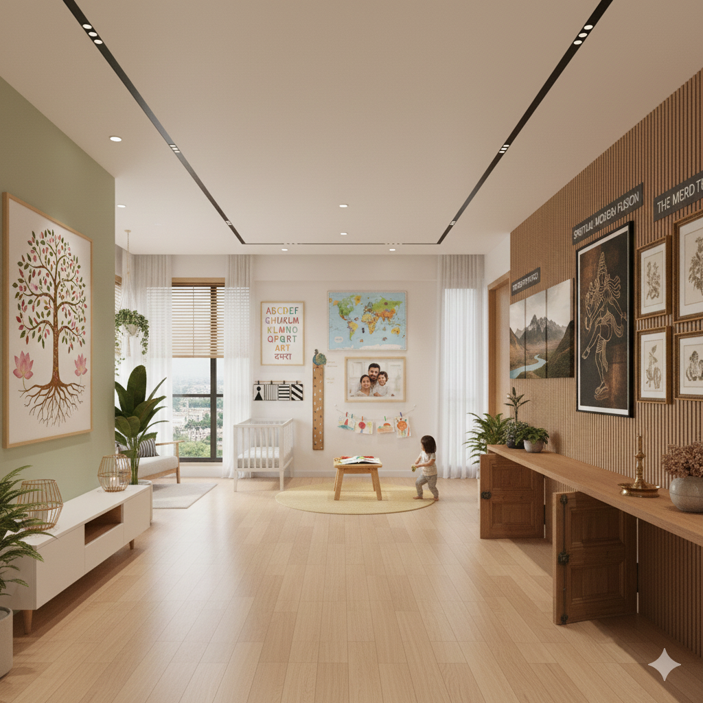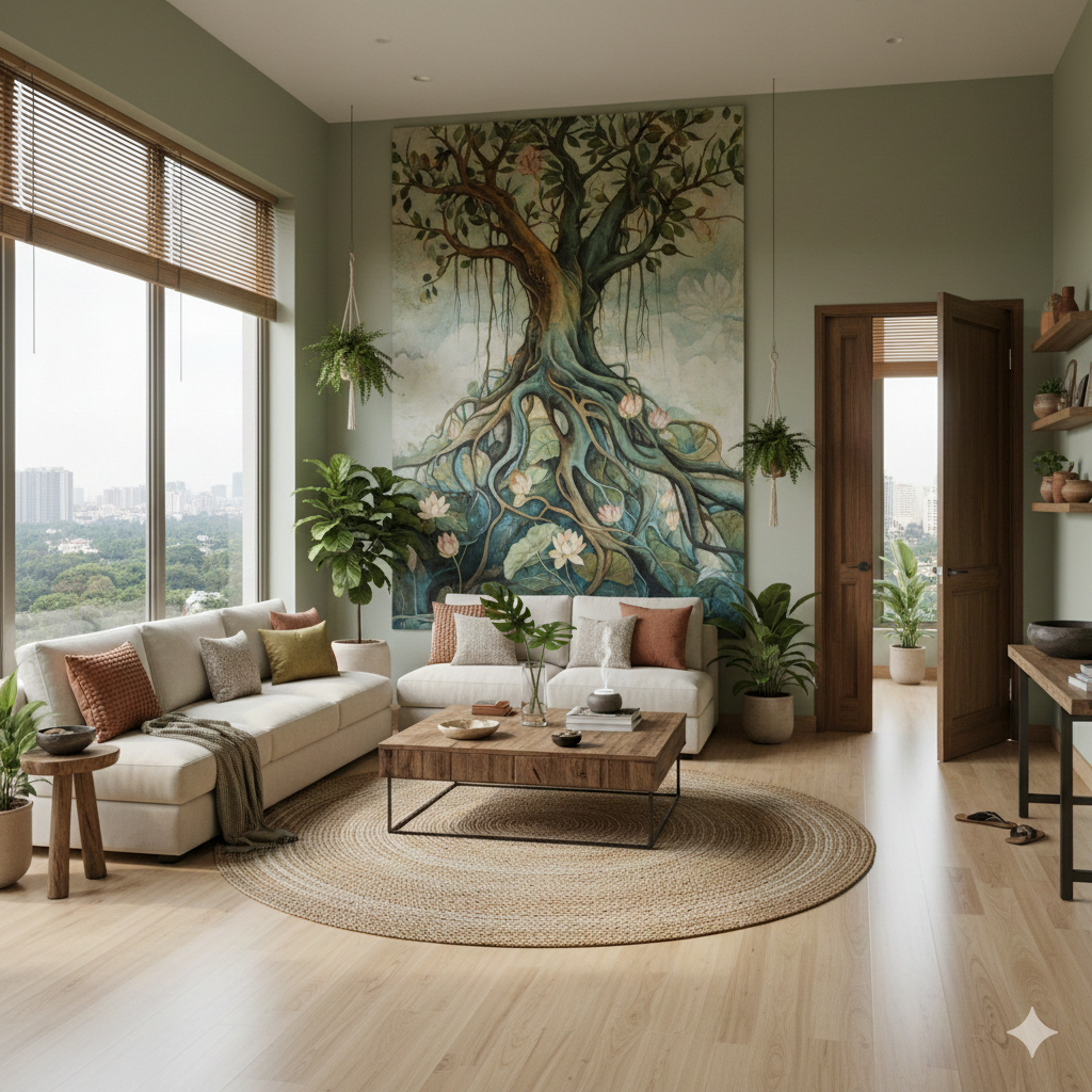 As urbanization accelerates across Indian metropolises, lifestyle-related health issues are on the rise, making “Wellness Design” a critical response. This approach transcends mere aesthetics to include functionality that supports healthy lifestyles and mental restoration.4 A key component of this is biophilia—the innate human tendency to seek connections with nature. For families living in high-rise apartments in cities like Mumbai, Bangalore, or Delhi, where access to private green space is limited, the integration of biophilic elements into the décor is essential.