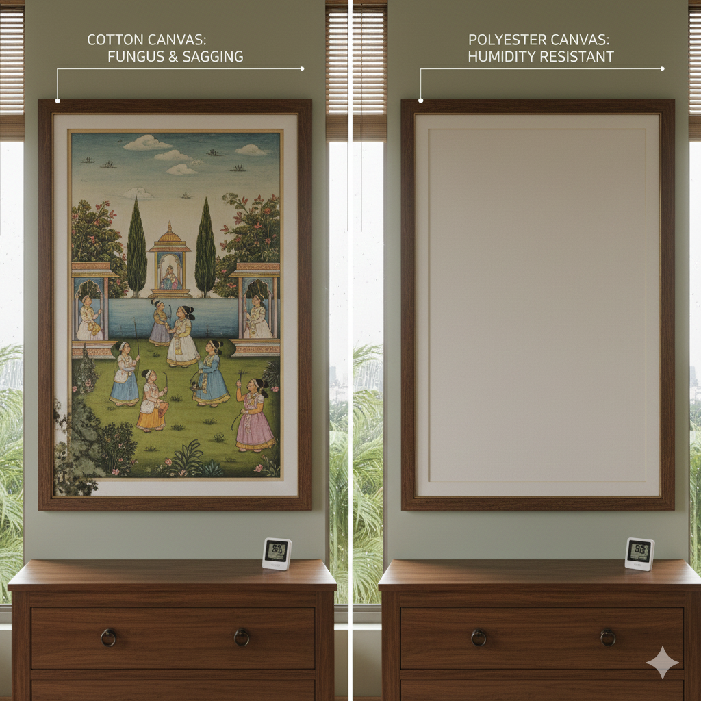 The choice between cotton and polyester canvas is a frequent point of contention. While cotton is the traditional choice for “fine art,” modern polymer science offers compelling advantages for the uncontrolled climate of a typical Indian home.