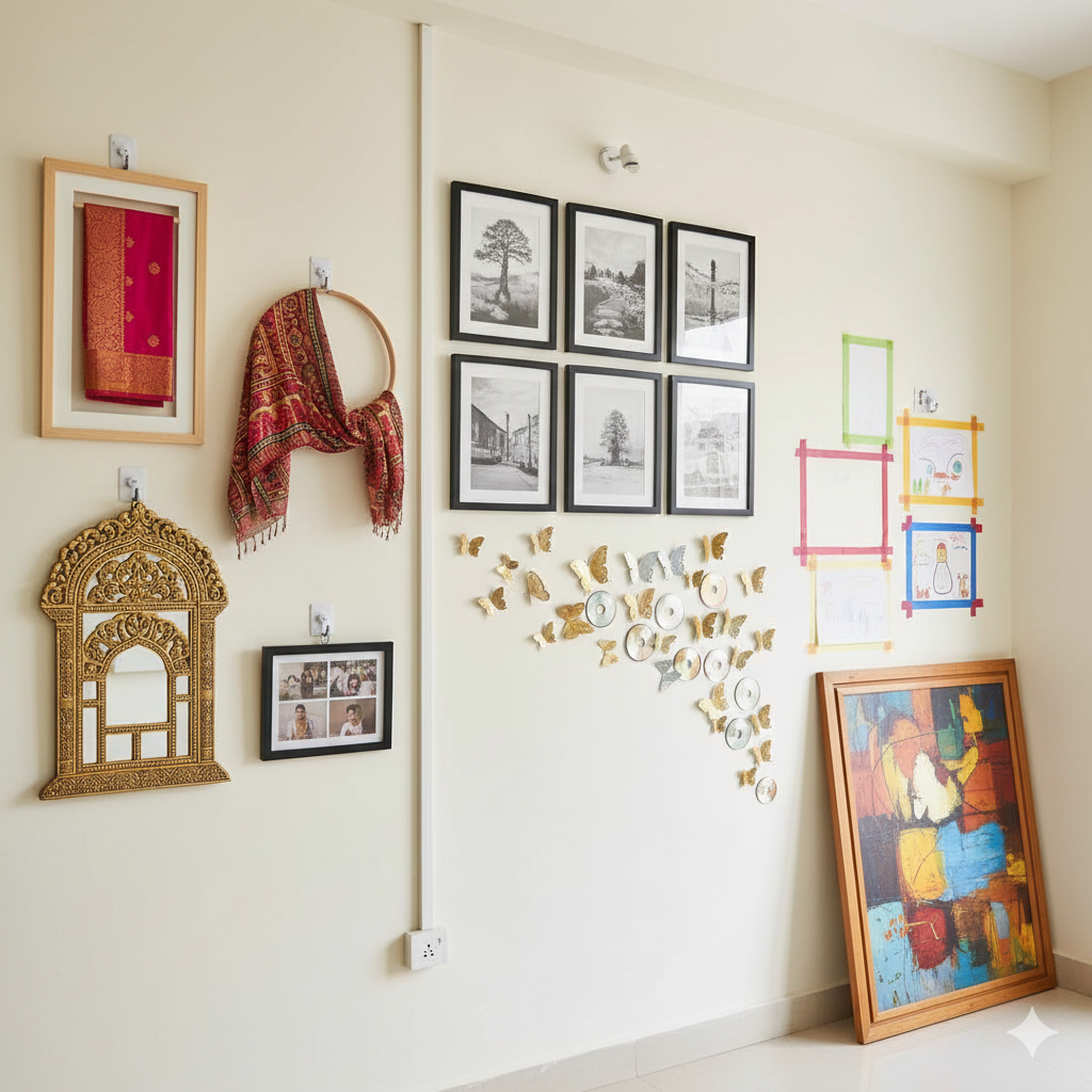 - Upcycling Textiles: Frame pieces of old, heavy silk sarees, embroidered dupattas, or tribal fabrics. This creates unique, culturally rich wall art that honors family heritage at a minimal cost.61